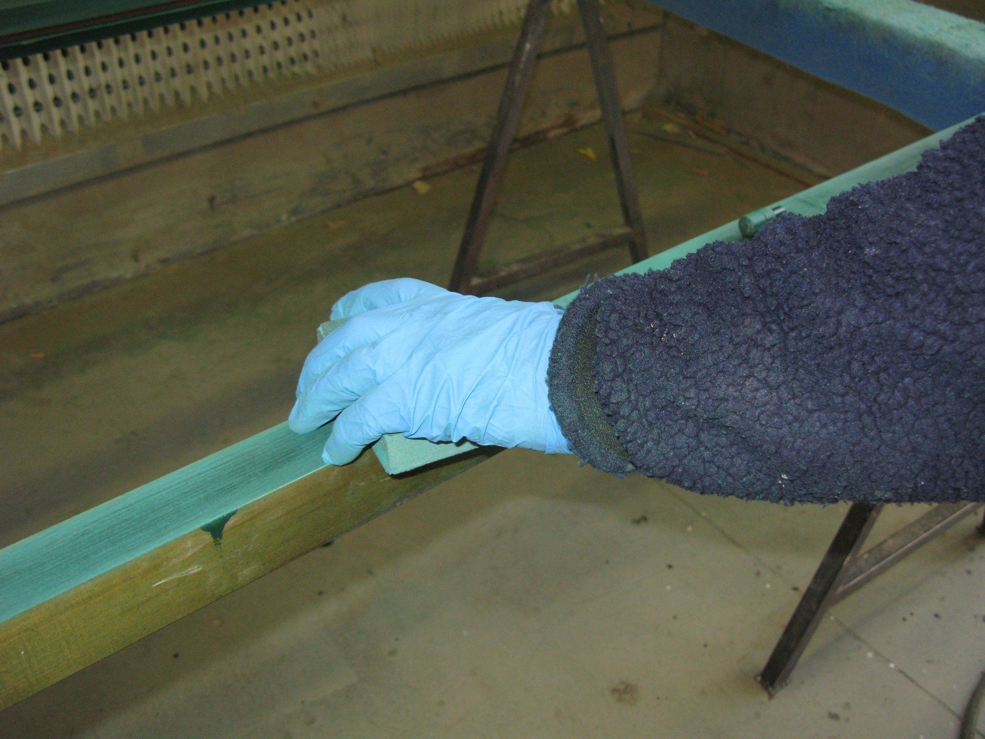 - operazione di sgrossatura della vernice con apposite macchine levigatrici e diverse grane di carta di vetro, sino a raggiungere il legno;